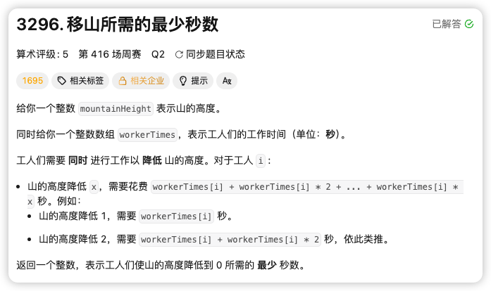3296. 移山所需的最少秒数