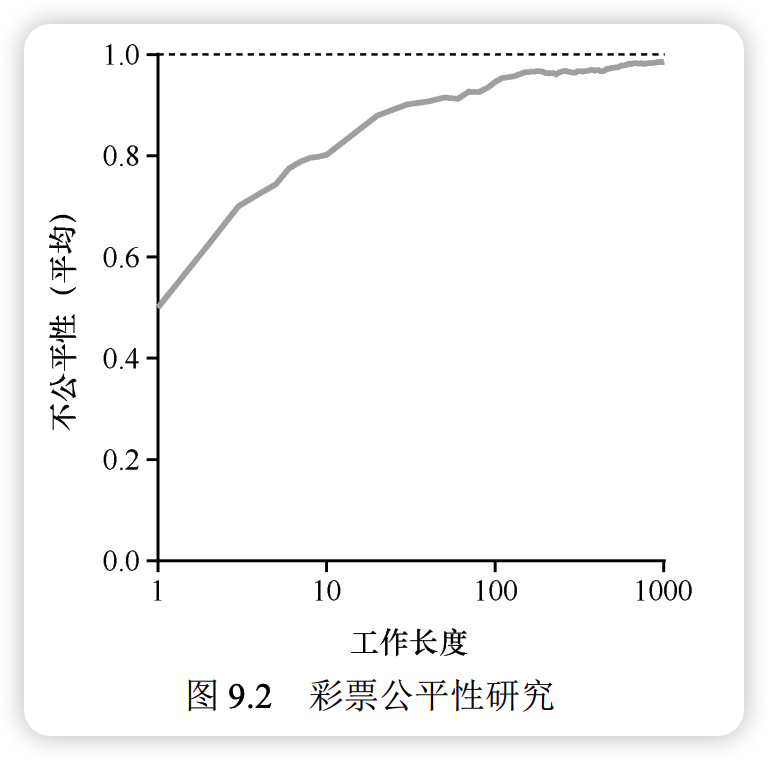为了衡量彩票调度的效果,我们引入不公平指标 (Unfairness metric):