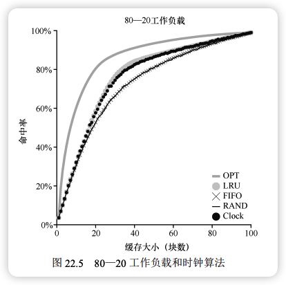 表 22.4 追踪 LRU 策略 (命中率 54.5%)